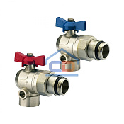 Пара угловых шаровых кранов «папа-мама» с фитингом с мягким уплотнением, бабочка. В комплекте подача и обратка.