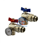 Шаровой кран угловой для коллектора с термометром 1" (дюйм)