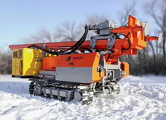 Малогабаритная самоходная буровая установка SBU-105 c погружным пневмоударником. Сочетает в себе маневренность, экономичность и проектную производительность работ. Станок имеет возможность бурения по породам широкого диапазона крепости f=5-20 (по шкале профессора Протодьяконова). Имеет возможность бурения как вертикальных, так и наклонных скважин. Также может быть использована для разбуривания крупных валунов, оставшихся после взрывных работ на площадке.