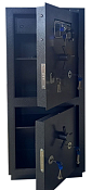Сейф взломостойкий, тяжелый SKZ 130-50-37,5. Размеры внешние 1300*500*375 мм. Суммарная толщина листа дверного полотно 60 мм. Вертикальные и горизонтальные конструкции сделаны строго по стандарту и приняты от 1,2 по 2,0 мм. Замки специальные, на верхнем ярусе 2 шт, в нижнем - 2 шт высокой степени взломостойкости прошедшие лабораторные испытания по схеме 3. На верхнем ярусе ЭЛЕКТРОННО-КОДОВЫЙ ЗАМОК специальный для сейфа с дополнительными ключами в случае разрядки батарей. На этом ярусе установлено трейзер с размером 185*400*290 мм со взломостойким замком. Полки переставные. Сейф весит около от 45 по 72 (+/-6) кг. Цена и вес сейфа зависит от объема выборки и толщины используемого листа. При исп. листа 1,2 мм сейф стоит 2,25 млн сум. Если применять листы 2,0 мм и выше - цена колеблятся от 3,7 млн до 4,5 млн сум.