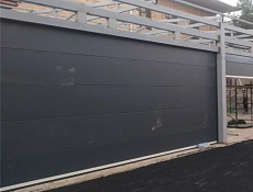 Секционные-самый удобный тип из ворот для гаража дома и коттеджа так как не требуют места перед и за проемом и обладают массой преимуществ. Полотно по рельсам уходит под потолок.
