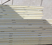 Этот прочный и легкий строительный материал имеет трехслойную структуру: два профилированных металлических листа разделяет утеплитель.