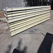 Ushbu mustahkam va yengil qurilish materiali uch qatlamli tuzilishga ega: ikkita profil qilingan metall list orasida issiqlik izolyatsiyasi joylashgan.