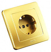 Розетка скрытой установки одноместная, заземляющий контакт со шторками (16А) золото- РС 16-312-07