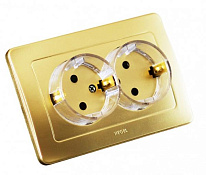 Розетка скрытой установки двухместная со шторками (16А), цвет золото-РС 16-342-07
