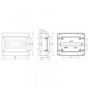 — Клеммы PE/N защищены от прикосновения. — Корпус имеет четыре точки крепления к стене. Также для точного монтажа имеется разметка крепежных отверстий с задней стороны щитка