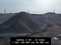 Щебень 5-20мм, 23-33мм. Клинец 0-5 мм. Карьер производитель . Клинец 180,000 сум с НДС. Щебень 100,000 сум с НДС,