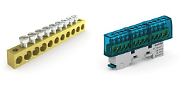 Шина "ноль" (рабочая нулевая шина) предназначена для присоединения к ней нулевых рабочих проводников. Материал: латунь с никелированным покрытием. Для шин класса "эконом" латунь без покрытия. Шины поставляются с пластиковыми изоляторами "DIN" (для установки на 35 мм DIN-рейки) или "стойка" (для установки на поверхность). Максимальное сечение проводника, присоединяемое в контактное отверстие, равно 16 кв. мм