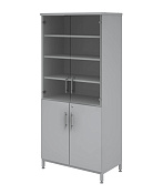 Конструкция неразборная, сварная, полки в кол-ве 4шт, выполнены из нержавеющей стали, шкаф изготовлен из нержавеющей стали.