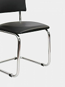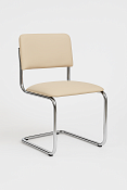 Стул на полозьях из прочной круглой металлической трубы с хромированным покрытием.