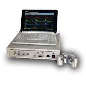 Электрические сигналы с акустических датчиков анализируются в устройстве сбора и обработки информации по программе, установленной в переносном компьютере.
