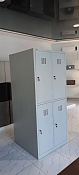 Металлический шкаф двуликий из восьми ячеек (двухсторонно из 4 ячеек). Габариты 1800*800*800 мм. Ячейка 900*400*400 мм. Запирается с ключом. В ячейках крючки для взвешивание одежды.