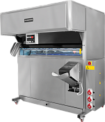 Шкаф предварительной расстойки синхронизирован с другими машинами для получения заготовок, это можно представить, как широкий непрерывный конвейер с отдельными ячейками и климатическим контролем внутренней среды. Скорость работы камеры синхронизирована со скоростью работы объемного тесто делителя, что обеспечивает максимальную часовую производительность до 2400 изделий в час при 10-и минутах рас стойки.
