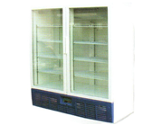 (цельнозаливной корпус, толщина стенок 55 мм, две стеклянные, распашные двери укомплектованы возвратным механизмом, t – 0….+8С, внутренний объем – 1400 л, мощность компрессора – 0,61 кВт, холодопроизводит. – 0,96 кВт, площадь полки – 0,35 кв. м, кол-во полок – 8(10), нагрузка на полку – 50 кг, макс. загрузка – 500 кг, тип охлаждения – динамический, тип оттайки (среднетемп./низкотемп.) – естеств./электр., габ.размеры–1600х725х1980, вес – 219 кг.)