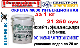 ООО « Universal Plast Montaj Engineering » выражает Вам своё глубокое уважение и почтение, имеет честь сообщить Вам, что мы является с марта 2007 года по настоящее время единственным в Узбекистане официальным дилером завода-изготовителя ЗАО ГК «ПЕНЕТРОН-РОССИЯ» гидроизоляционных материалов проникающего действия системы «ПЕНЕТРОН» (см. Приложение №1 Свидетельство о регистрации и Сертификат дилера ГК «ПЕНЕТРОН-РОССИЯ»).