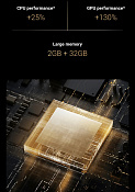 - Память: 2 ГБ оперативной памяти (RAM) и 32 ГБ встроенной памяти (ROM).