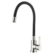Необычный стильный смеситель с массивным нержавеющим корпусом и цветным гибким покрытым силиконом изливом