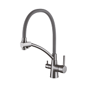 — Высокий поворотный излив: Высокая дугообразная форма излива обеспечивает достаточно свободного пространства в мойке. Вы сможете легко мыть габаритную посуду и наполнять водой высокие емкости.