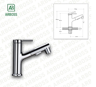 Излив многофункциональный, с вытягивающимся изливом, с кнопкой переключения на режим «фонтан» и с переключением на режим «душ» поворотом аэратора_x000D_