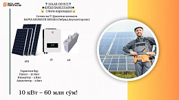 О частной производственной предприятии «SOLARDEVICE» Группа компаний «SOLARDEVICE» ведёт свою историю с 2018 года. Все эти годы мы не просто работали, а развивались сами и помогали развивать рынок в сфере возобновляемых источников энергии. Основной деятельностью предприятия является производство, установка и оптовая продажа солнечных фотоэлектрических станций, солнечных панелей, солнечных водонагревателей, солнечных коллекторов, бесперебойного питания, солнечных уличных прожекторов, а также комплектующих деталей для ФЭС. На сегодняшний день во всех регионах Республики установлено 200 объектов солнечных ФЭС разных мощностей, более 300 солнечных водонагревателей и более 1000 солнечных уличных осветительных приборов. Многолетний опыт и безупречная репутация позволили нам создать надежные партнерские отношения с крупнейшими производителями Sunways, Sumry а также Wingo Solar который динамично развиваются в сфере солнечной энергетике. На сегодняшний день «SOLARDEVICE» является одним из крупнейших и самым успешном партнером таких брендов как iDevice и Growatt и множество других. Мы ценим доверие наших заказчиков и работаем с каждым клиентом, исходя из принципов комплексного подхода к поставленным задачам, взаимного долгосрочного партнерства и полной информационной открытости. Наша компания гарантирует своим клиентам внимательное отношение к их потребностям. От имени коллектива ООО «SOLARDEVICE» желаем всем Вам солнечного неба, здоровья и больше радости!