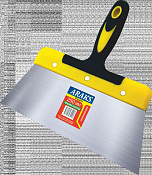 Шпатель 250 мм, нержавеющий металл, пластиковая рукоятка, используется для нанесения и выравнивания строительной смеси и используется для нанесения и сглаживания гипсовой штукатурки при малярных и строительных работах.