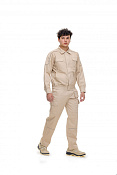 Костюм состоит из куртки и брюк прямого силуэта, разработанных с учетом комфорта, функциональности и требований безопасности.