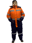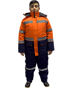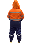 • для обеспечения безопасности в условиях плохой видимости по верху и на рукавах куртки, по низу брючин брюки расположены 40 мм световозвращающие полосы.