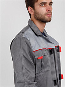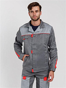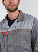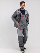 Костюм куртка, полукомбинезон. Куртка укороченная с притачным поясом, с регуляторами ширины на контактной ленте, планка на липучках закрывающая молнию. Правый верхний накладной карман с клапаном с застежкой на липучке. Левый верхний накладной карман с двумя отделениями. Нижние карманы втачные. Рукава усилены налокотниками с вытачками для удобного сгибания локтя. Полукомбинезон с карманами-наколенниками с вытачками для удобного сгибания в колене. Над коленями расположены накладные карманы с застежкой на контактной ленте. На поясе расположены втачные карманы, и задний накладной карман. На правой ноге расположены функциональные карманы для инструментов. Костюм предназначен в основном для работников ИТР и другого рабочего персонала. Спецодежда мужская рабочая.