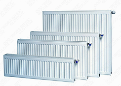Стальной панельный радиатор состоит из одной, двух или трех теплоотдающих панелей (первая цифра в обозначении типа). Каждая панель образована двумя симметричными штампованными листами, сваренными по периметру роликовым швом, а в допрессовках - точечным.