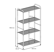 Система хранения имеет 4 металлические сетчатые полки, каждая из которых выдерживает нагрузку до 8 кг.