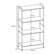 Система хранения имеет 4 полки из лдсп, каждая из которых выдерживает нагрузку до 10 кг.