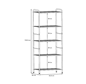 Система хранения имеет 5 металлических сетчатых полок, каждая из которых выдерживает нагрузку до 8 кг.