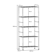 Система хранения имеет 5 металлических сетчатых полок, каждая из которых выдерживает нагрузку до 8 кг.