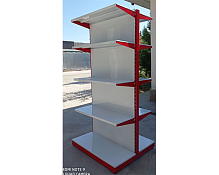 Стеллажи металлические сборно-разборные для тогровых супер (гипер) маркетов. Стеллаж имеет 4 полки, с подиумом - 5. Козырек по желанию клиента (+80 000 сум одно сторона). Порошковая краска по RAL