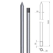 Стержень заземления, оцинкованный с заострением диаметром 20 мм предназначен для монтажа в составе как первый элемент вертикального электрода заземления на глубину от 3 до 30 метров. Стержни заземления соединяются между собой муфтами. На стержень заземления нанесено цинковое покрытие более 60 мкм, что обеспечивает срок службы более 30 лет.