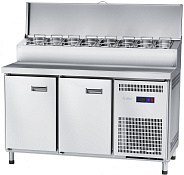 6.Стол холодильный среднетемпературный СХС-80-01П, для пиццы, 2 двери нерж. сталь AISI 202, 1434х807х1098 мм, t -2...+8 °С, закрытый верхний отсек, GN-1/4 - 8 шт.
