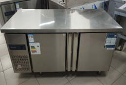 Холодильный стол 2-х дверный. среднетемпературный диапазон -5+5 С. габаритные размеры 1800х700х800мм. корпус и внутр. камера нерж.сталь