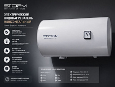 Storm 50 горизонтальный — накопительный электрический водонагреватель объёмом 50 литров с горизонтальной установкой, предназначенный для обеспечения горячей водой квартиры или дома (2–3 точки водоразбора).