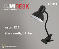 Светильник настольный с зажимом "LumiDesk" LD-051, (ЧЁРНЫЙ), 1*40Вт Е-27