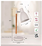 Светильник настольный SCANDINAVIAN 02, E27, металл, дерево+белый, артикул 130-03646