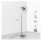 Изящный напольный торшер создает уют. Прочное основание обеспечивает максимальную устойчивость конструкции даже на ковре или паласе. Двухколенная поворотная штанга даёт возможность легко настраивать направление. Торшер снабжён патроном E27. Плафон выполнен из металла.