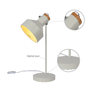 Светильник настольный SCANDINAVIAN 02, E27, металл, дерево+белый, артикул 130-03646