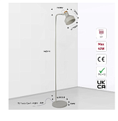 Изящный напольный торшер создает уют. Прочное основание обеспечивает максимальную устойчивость конструкции даже на ковре или паласе. Двухколенная поворотная штанга даёт возможность легко настраивать направление. Торшер снабжён патроном E27. Плафон выполнен из металла.