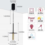 Светильник подвесной LED H1174YB, 7W, 4000K, желтая бронза (TEKLED), артикул 150-19094