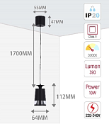 Светильник подвесной LED PL6512S, 10W, черный, 3000K (TEKLED), артикул 150-19082