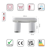Светильник потолочный MR16, встраиваемый, белый, L220xW56xH140 мм, артикул 172-03040