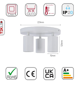 Светильник потолочный MR16, встраиваемый, белый, L220xW56xH140 мм, артикул 172-03044
