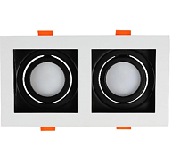 Светильник прямоугольный встраиваемый наклонный downlight GU5.3, белый и черный, 2 светильника (TEKLED), артикул 143-03514