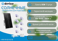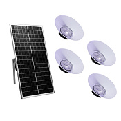 В комплект входит солнечная панель и 7 ламп мощностью 100 Вт.