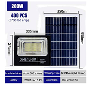 Светодиодный прожектор на солнечных батареях с датчиком движения RKU LED SOLAR PANEL 200W 10V/40W 2700LM 6500K 240-035025
